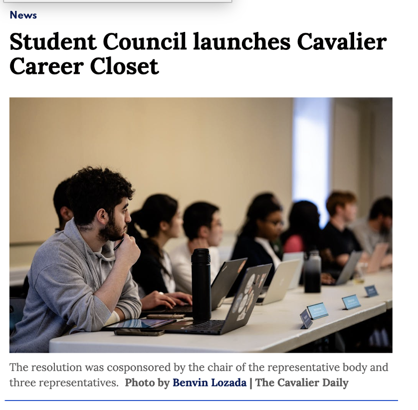 - Cavalier Daily: "Student Council Launches Cavalier Career Closet"